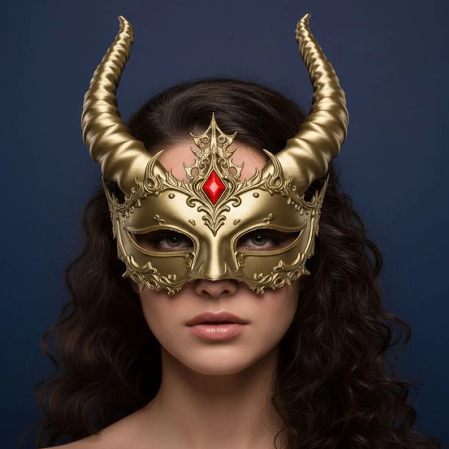 Altın Sarısı Boynuzlu Maske – Abis3D Tasarımı. Kostüm partileri ve dekorasyon için eşsiz, detaylı maske. Şık tasarımıyla dikkatleri üzerinize çekin.